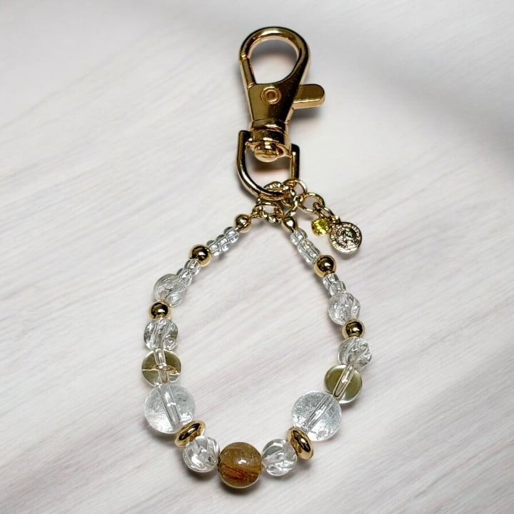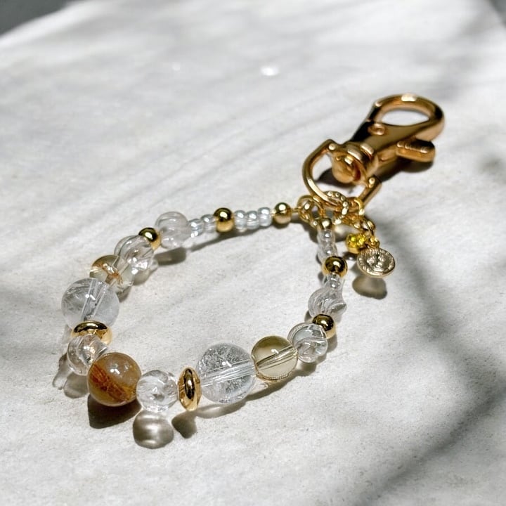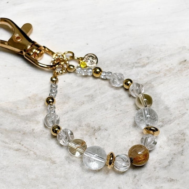 太陽ルチルクォーツとシトリン お仕事運・金運のキーホルダー