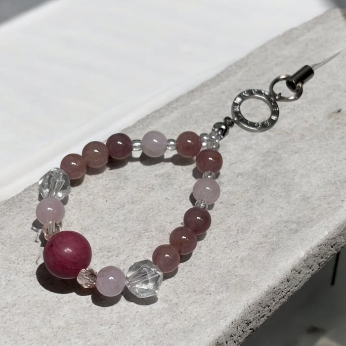 全ての石の組み合わせで恋愛運が向上するストラップに仕上げました。